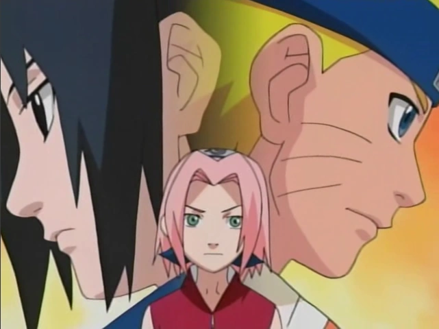 During her early years in the Academy, Sakura was frequently bullied by others due to her large forehead. To try and combat this, Sakura used her bangs to hide her forehead, fueling the other kids' teasing by indicating she was sensitive about it. Ino Yamanaka, realising this, helped Sakura by giving her a red ribbon that she used as a way of drawing attention to the cuter features of her forehead, which helped Sakura overcome her insecurity. The two became best friends and Sakura grew more confident, developing her own unique personality under Ino's guidance. Despite this, Sakura felt that she was living in Ino's shadow and longed to prove herself as Ino's equal. Later, when Sakura found out that Ino also had a crush on Sasuke Uchiha, Sakura ended their friendship so that they could compete for Sasuke's love, thus beginning a bitter rivalry between the two.[1]