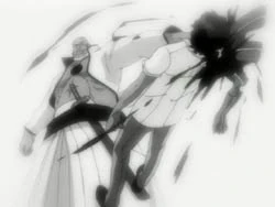 Sado and Shunsui talk for a bit and try to avoid battling each other, but they soon realize that they must battle and the two begin their fight.[55] Shunsui quickly overwhelms Sado with his quick reflexes and Shunsui wonders why Sado came to Soul Society, and Sado tells him that it was because Ichigo wants to save Rukia and that's good enough for him. This causes Shunsui to draw his dual Zanpakutō, and Sado charges in for one final attack. [56] However, Shunsui stabs Sado across his stomach and easily defeats him.[57] Shunsui then decides to put Sado into the detention center.[58]